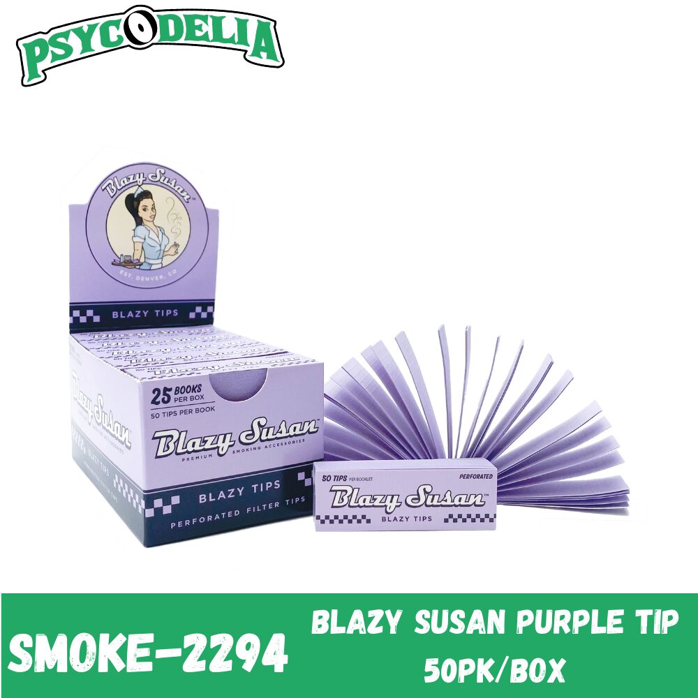 Eleva tu experiencia de fumado con el paquete de 50 filtros Blazy Susan Purple Tip, diseñados para proporcionar una fumada suave y agradable con un toque de color.